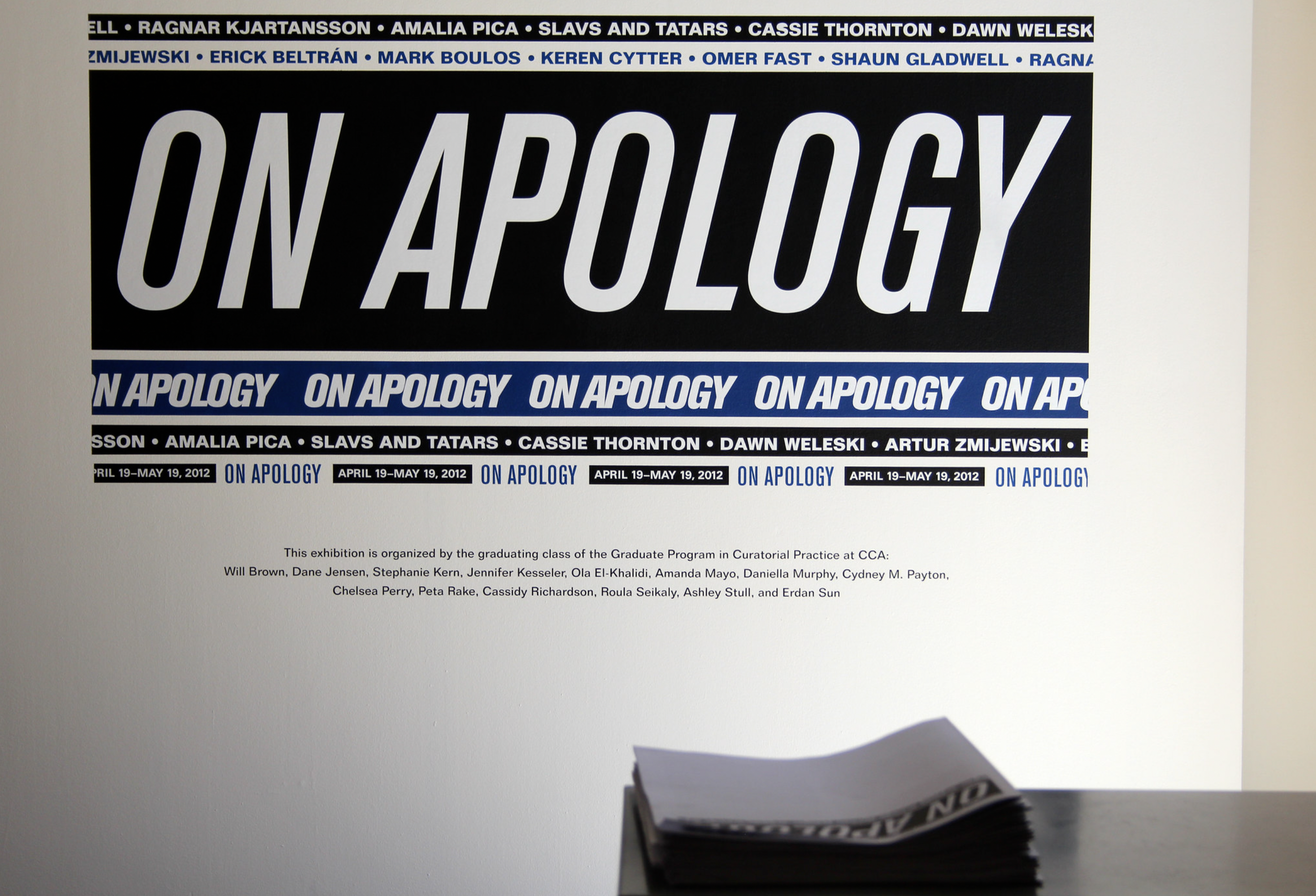 The title of this exhibition, On Apology, references Jacques Derrida’s 2001 essay “On Forgiveness,” in which he discusses the act of forgiving, and the possibility of genuine forgiveness, versus the complexities of amnesty and restitution. This exhibition seeks to outline the multifaceted perspectives and exchanges of power that are central to the formulation of apologies via artworks that navigate sincere regret, fraught apologies, and even the absence of contrition.